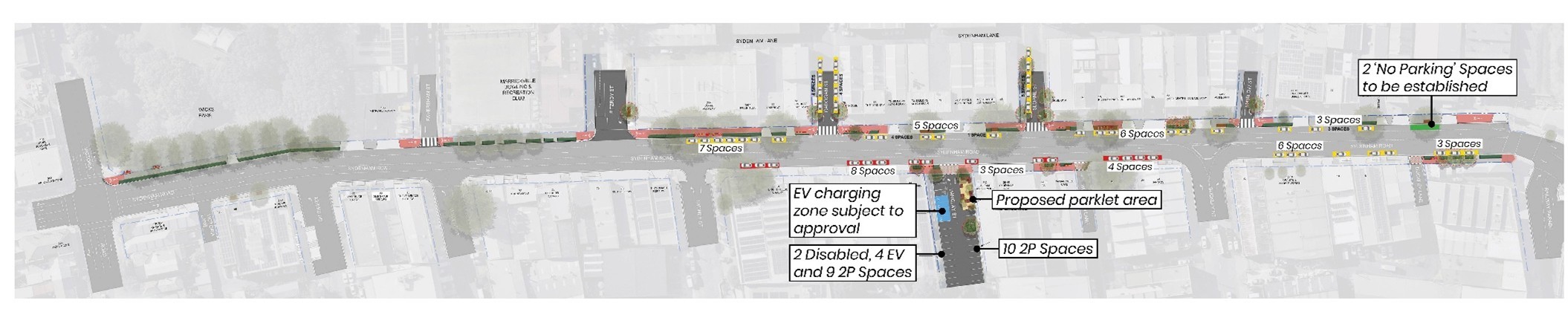 - Introduction of 2 hour time limited parking in select locations on the northern and southern sides of Sydenham Road and adjacent side streets